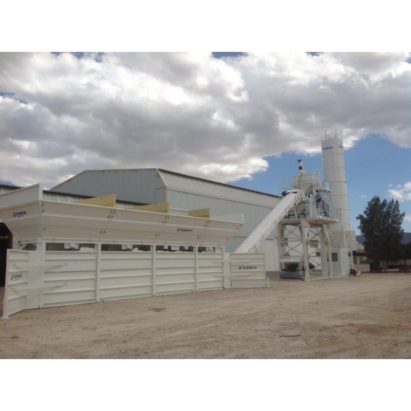 El Módulo de áridos es principalmente el grupo de tolvas, de diseño modular, compacto y abatible, que contiene en su interior todos los elementos necesarios para su montaje y funcionamiento sin necesidad de portes adicionales. Tiene la particularidad de que pueden ir añadiéndose módulos de tolvas individuales para ampliar de 4 a 5 áridos, de 5 a 6, etc.. Todos los suplementos van abatibles y abisagrados de fábrica. La cinta pesadora se transporta conjuntamente con el grupo de tolvas, minimizando los requerimientos logísticos de la central y facilitando la preinstalación del módulo con conexiones rápidas.
